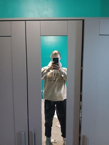 This hoodie is so soft. I love the colors. I wore it to the rodeo and got a ton of complements. It is oversized but not by much. I’m wearing a small and I could’ve sized up to medium for a little more room.
